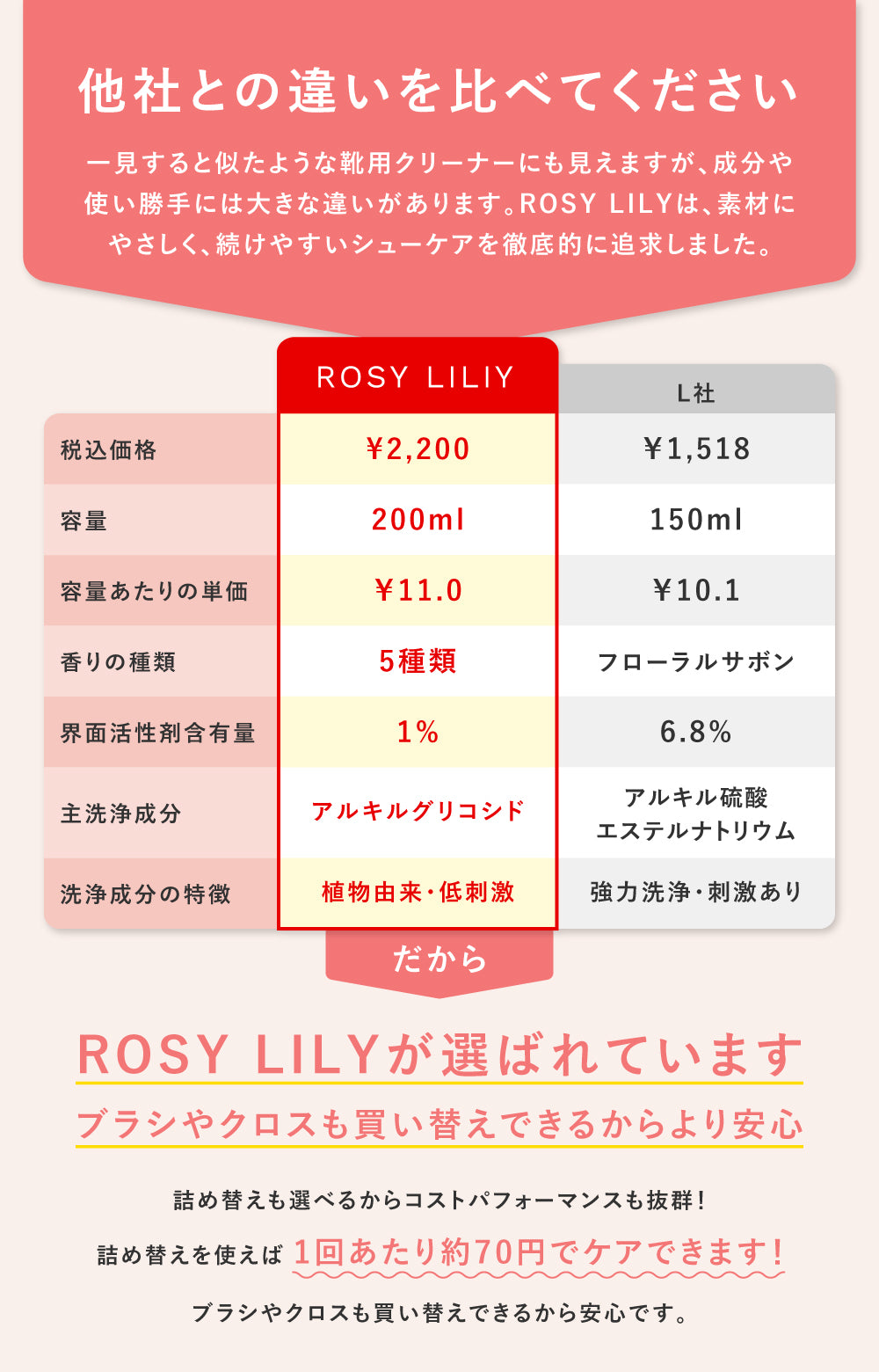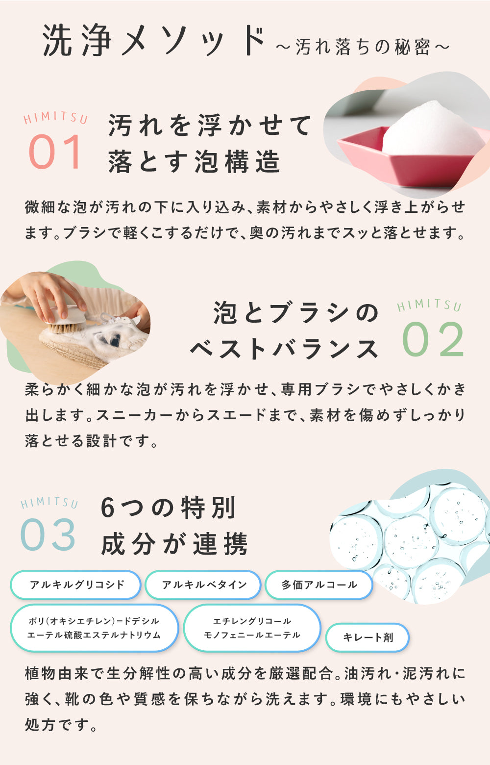 すすぎやすい: 靴に成分が残りにくいので、安心して使うことができます。素材の劣化を防ぎ、靴を長持ちさせます。