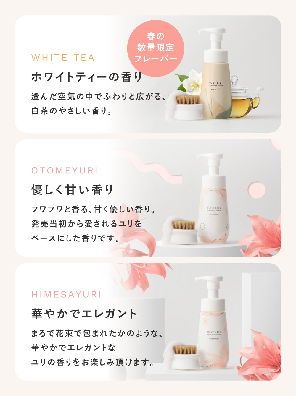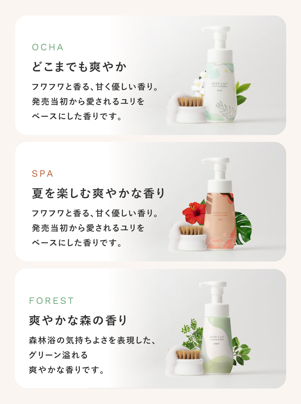 普段のROSYLILYとは趣向の違う香り、デザインで、男性の方へのプレゼントなどにもお喜びいただけるかと思います。すでにROSYLILYのシャンプーをお持ちの方も、是非香りの違いを楽しんでください。